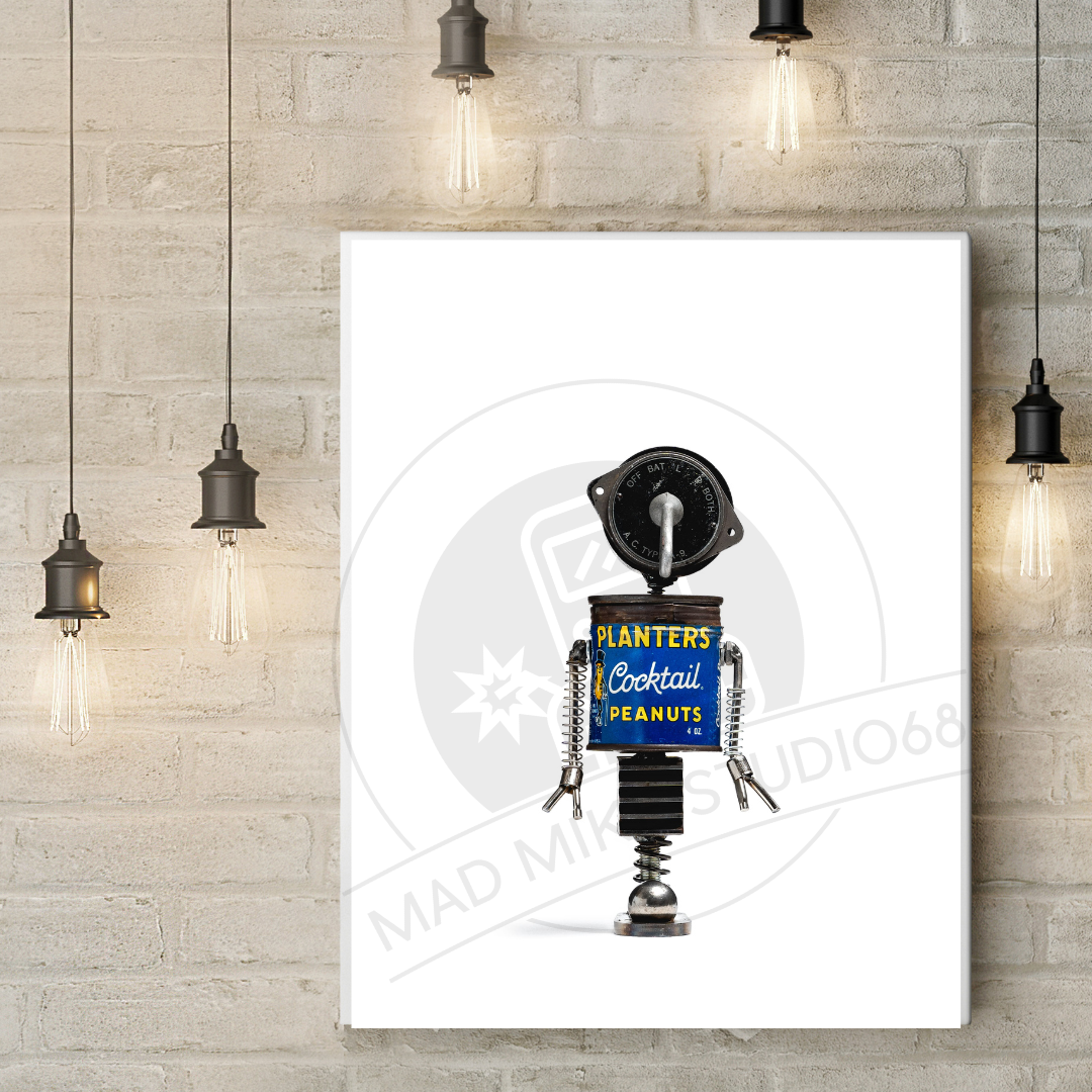 This professionally photographed high quality art print of one of Mad Mike Studio68's actual robot sculptures is printed on Epson Ultra Premium Photo paper. It will arrive signed by the artist and will be free of the watermark you see in this image. Mounting hardware or frame must be purchased separately. You will receive the 8.5 x 11" art print and artist bio carefully packaged with a cardboard backing and protected by a clear, moisture resistant, cellophane bag and rigid outer packaging. The 13 x 19" print and artist bio will arrive carefully packaged in a cardboard mailing tube.